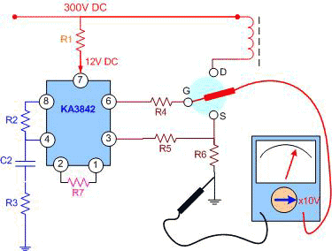 Trong các trường hợp còn điện áp 300VDC đầu vào nhưng không có điện áp ra thì thông thường IC công suất không hỏng, nguyên nhân thường do mất nguồn Vcc vào chân cấp nguồn 12V cho mạch dao động, chân này cần có điện áp từ 12V đến 15V .