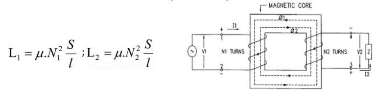 L1 và L2 – hệ số tự cảm của cuộn sơ cấp và cuộn thứ cấp tương ứng