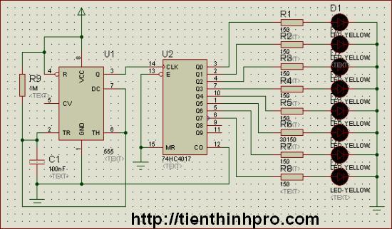 * Sơ đồ mạch led tổng thể giữa ic555 với ic4017 và led