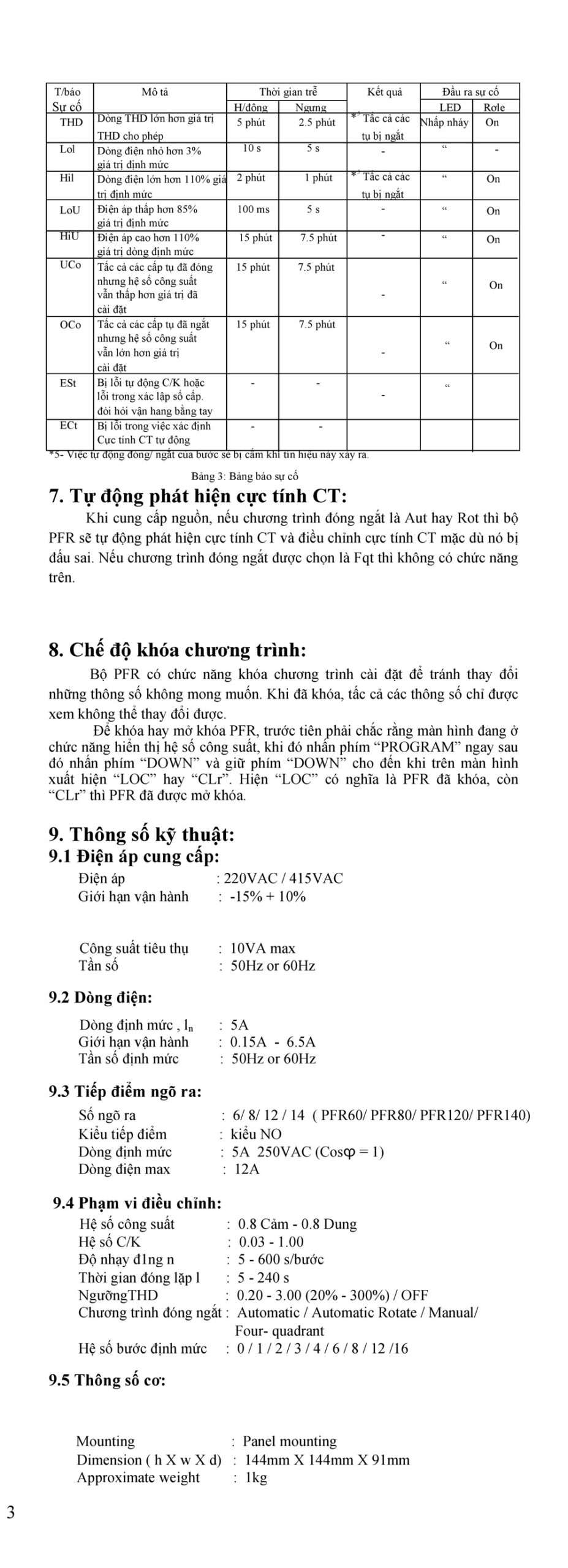 Trang 3 – Hướng dẫn sử dụng Bộ điều khiển PFR