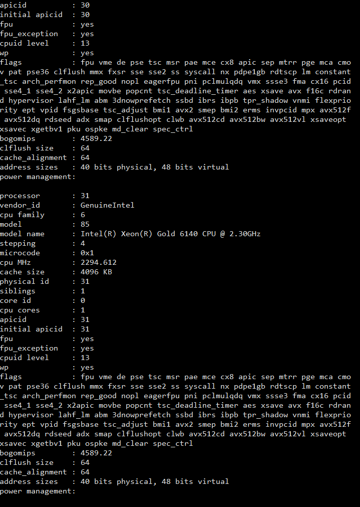 CPU model : Intel(R) Xeon(R) Gold 6140 CPU @ 2.30GHz