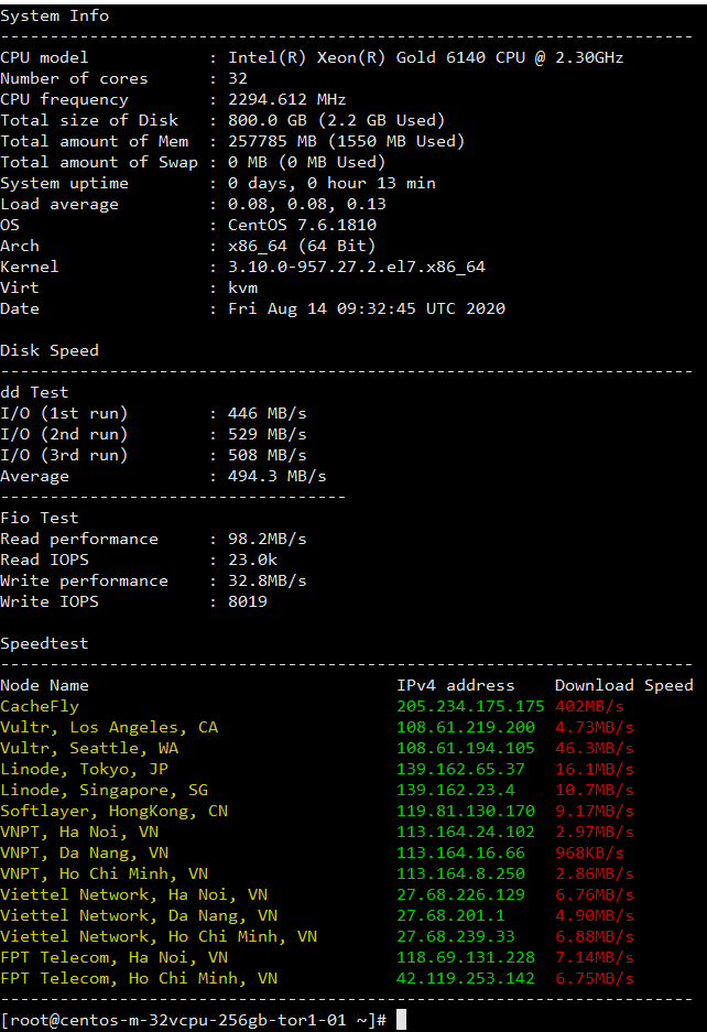 Tốc độ ổ cứng SSD ở đây thì thôi rồi, nó nhanh bá cháy, không như hôm qua mình test ổ cứng NVMe của VULTR mà có 300mb/s
